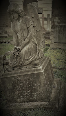 In Brompton, full Victorian symbolism is employed to reflect life, love, purity, death, loss, the soul and resurrection. Elements from the natural world, rich in meaning in previous centuries flourish in sculpted form with daffodils, lilies, birds, butterflies and snakes,to name but a few, all carved onto stone. Broken columns, inverted torches, draped urns and joining hands symbolize our earthly demise, the cycle of life and death and the journey to the afterlife. The traditional religious symbols abound, of course, with the Christian cross and the stepped cross, frequently inscribed with IHS but there are also many references to Ancient Egypt with obelisks, hieroglyphs and pyramidal forms. Unashamedly, I admit that one of my favourite symbols is the angel and I hoped that the ones here would be as evocative as those I saw in Birmingham, or indeed Highgate.