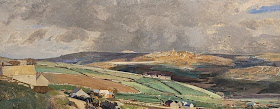Leaving the human interest of the paintings to one side, I took details of the paintings on display in the exhibition in order to 'feel' the essence of the countryside and seascapes beyond, without the elements that would indicate a set time in history. Such is the case with the section of Harvey's 1924 piece, The Road to Market, with its timeless sweeping moors and vast skies above. His works were exhibited several times in the Royal Academy in London, but Harvey never left his beloved Cornwall for the great city for any prolonged period.